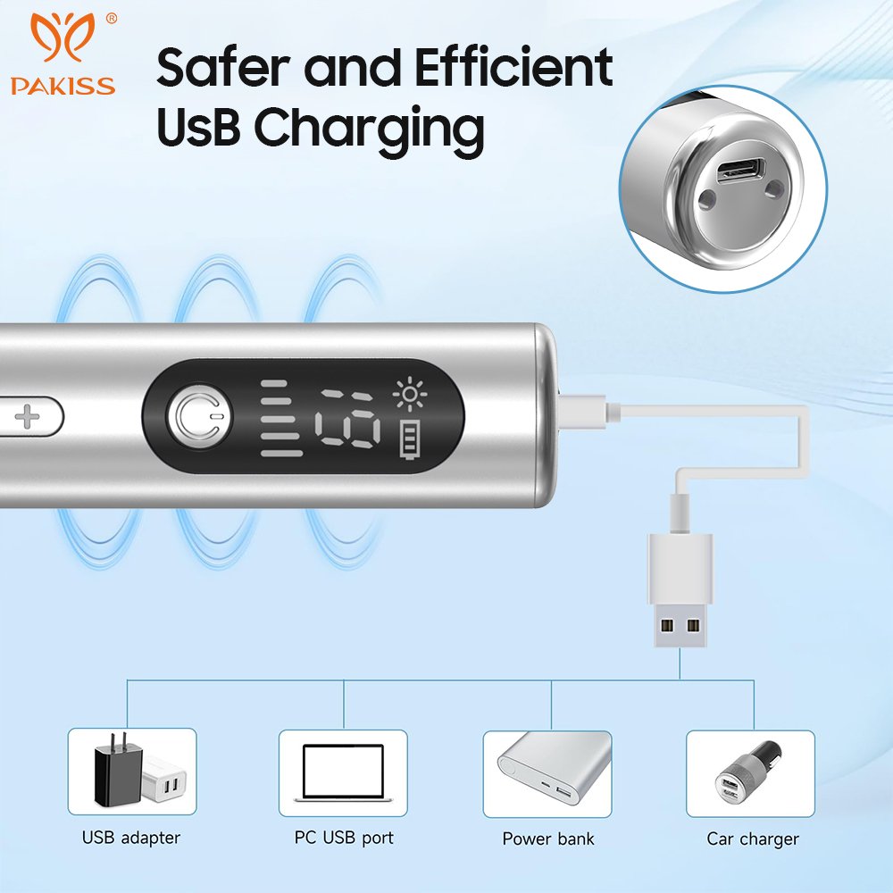 Built-in large battery with USB charging and replaceable tips for long-term, professional use.