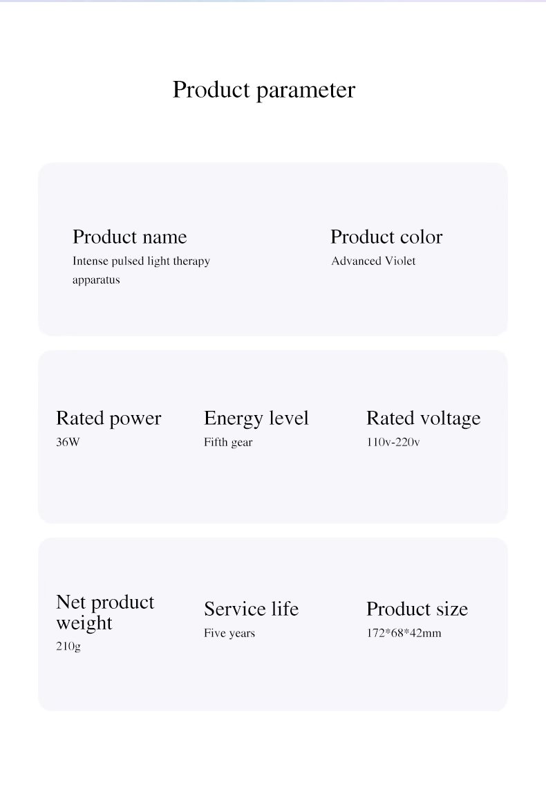 Feature: 10Hz high-speed flash, Extra-large treatment window, 510–1200nm wide spectrum, 400ms long pulse, Multi-skin tone compatibility, Unlimited flashes