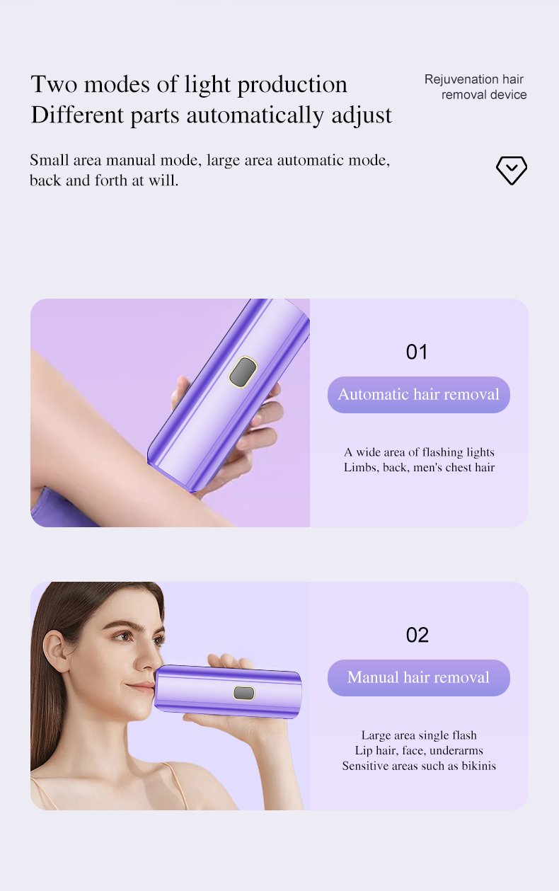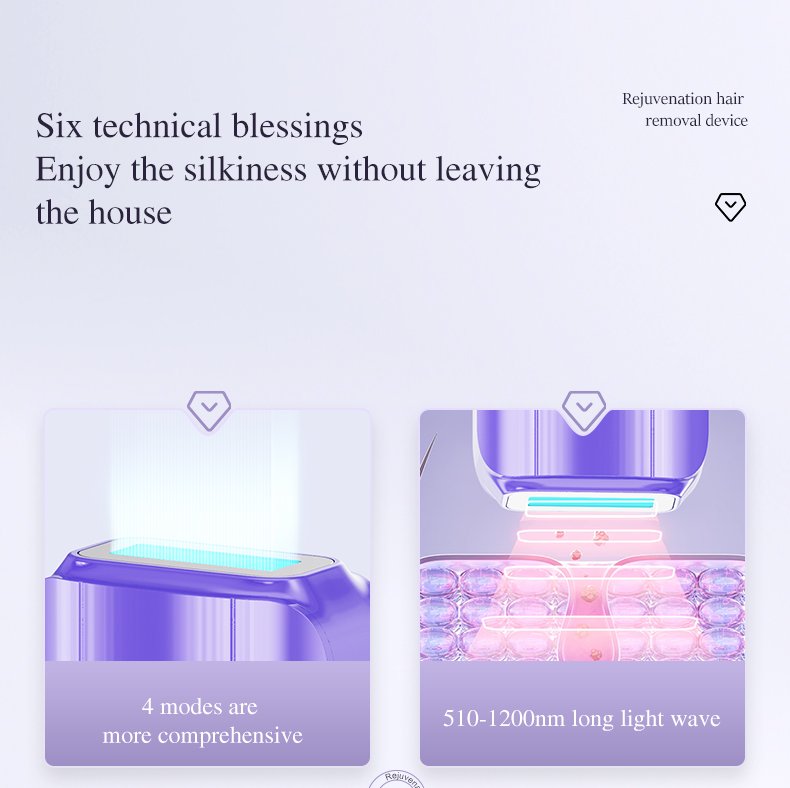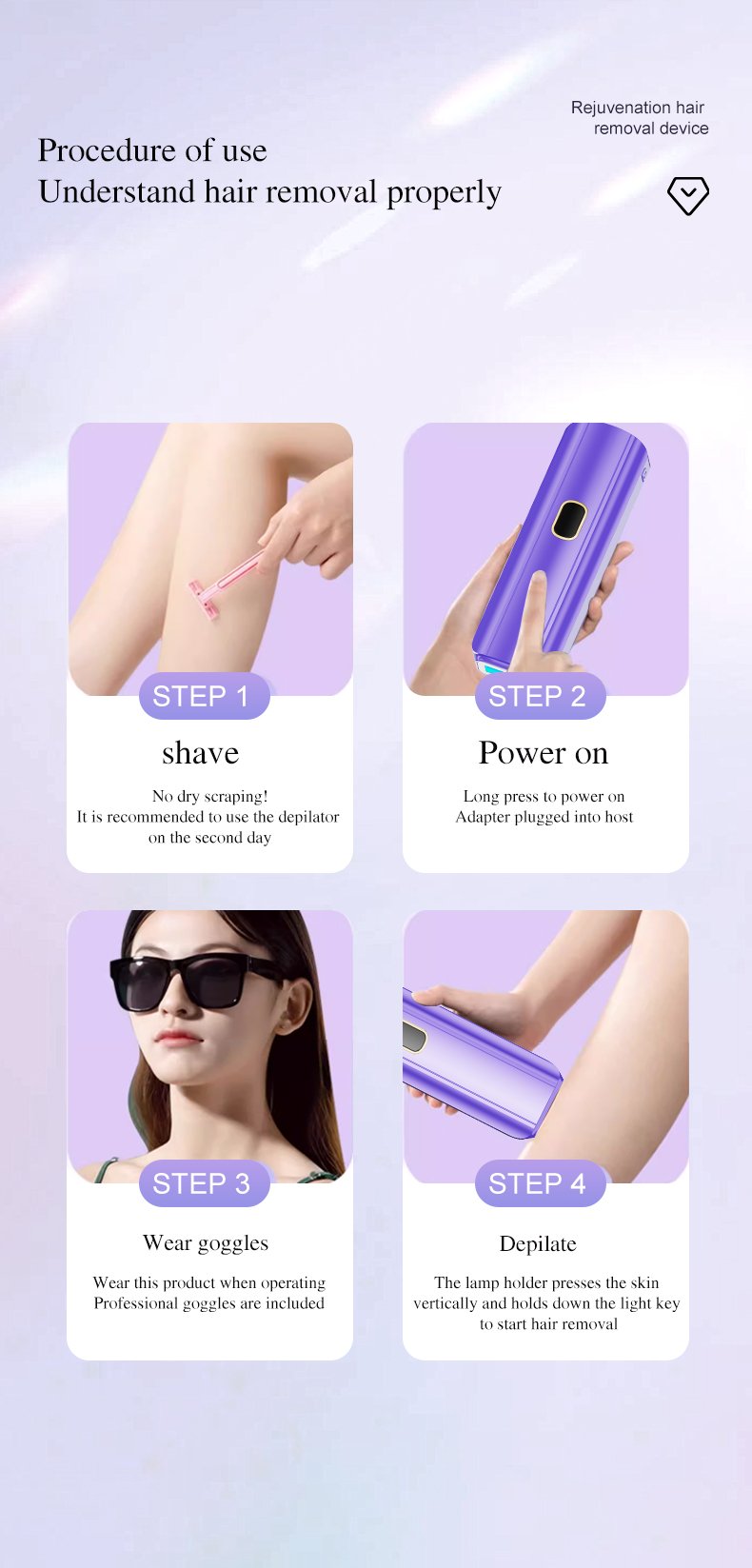 Function: High-efficiency hair removal, Hair growth reduction, Smooth skin care, Comfortable home treatment