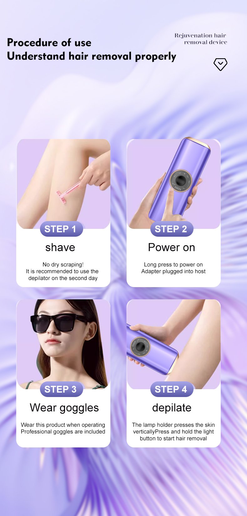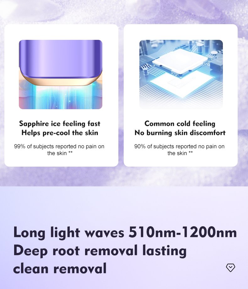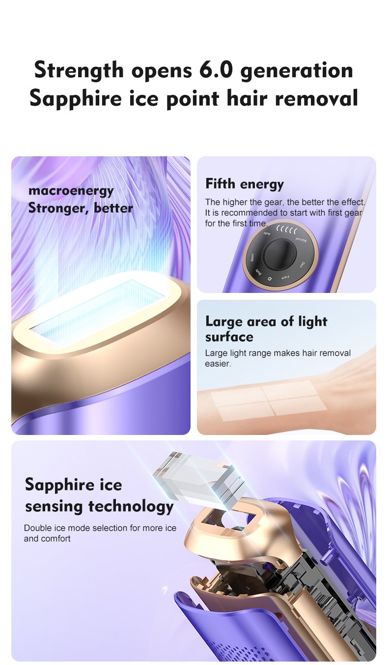 Function: Sapphire ice hair removal, Hair growth reduction, Skin cooling and protection, Comfortable full-body treatment