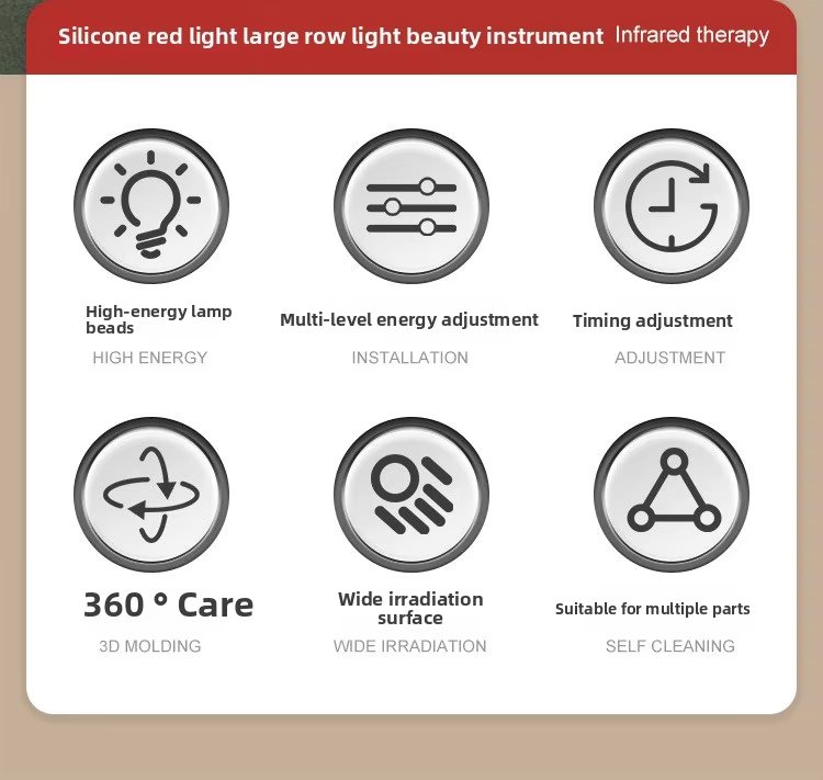 Soft silicone large-area light panel provides comfortable and safe skin contact during use.