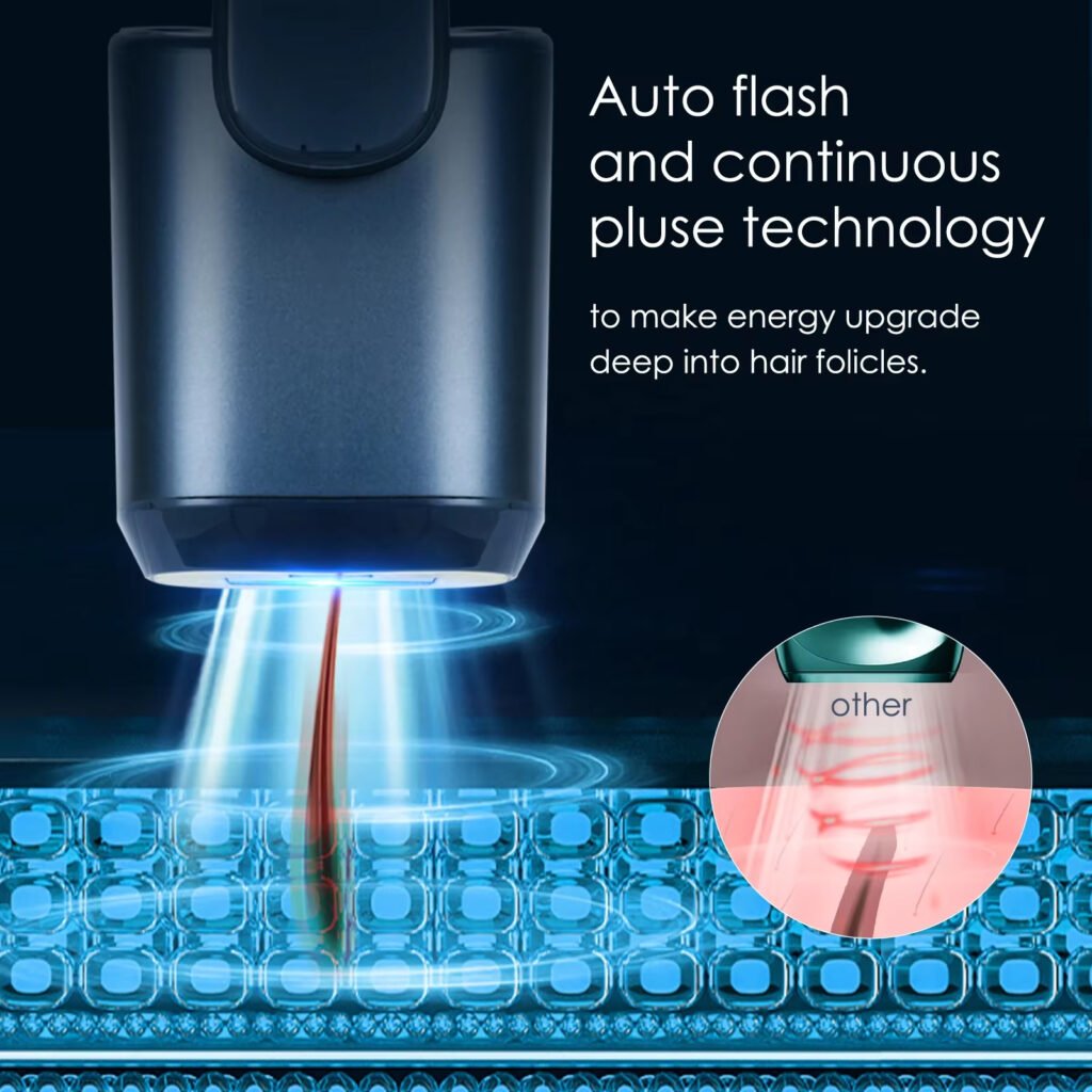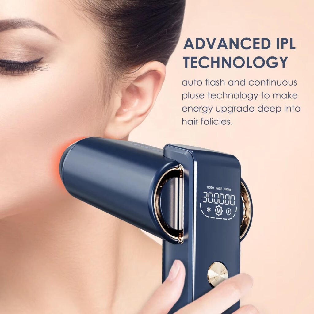 IPL hair removal, Sapphire cooling, Skin temperature control, Pain reduction, Hair follicle inhibition, Comfortable treatment, Skin protection, Home beauty care, Full-body hair removal
